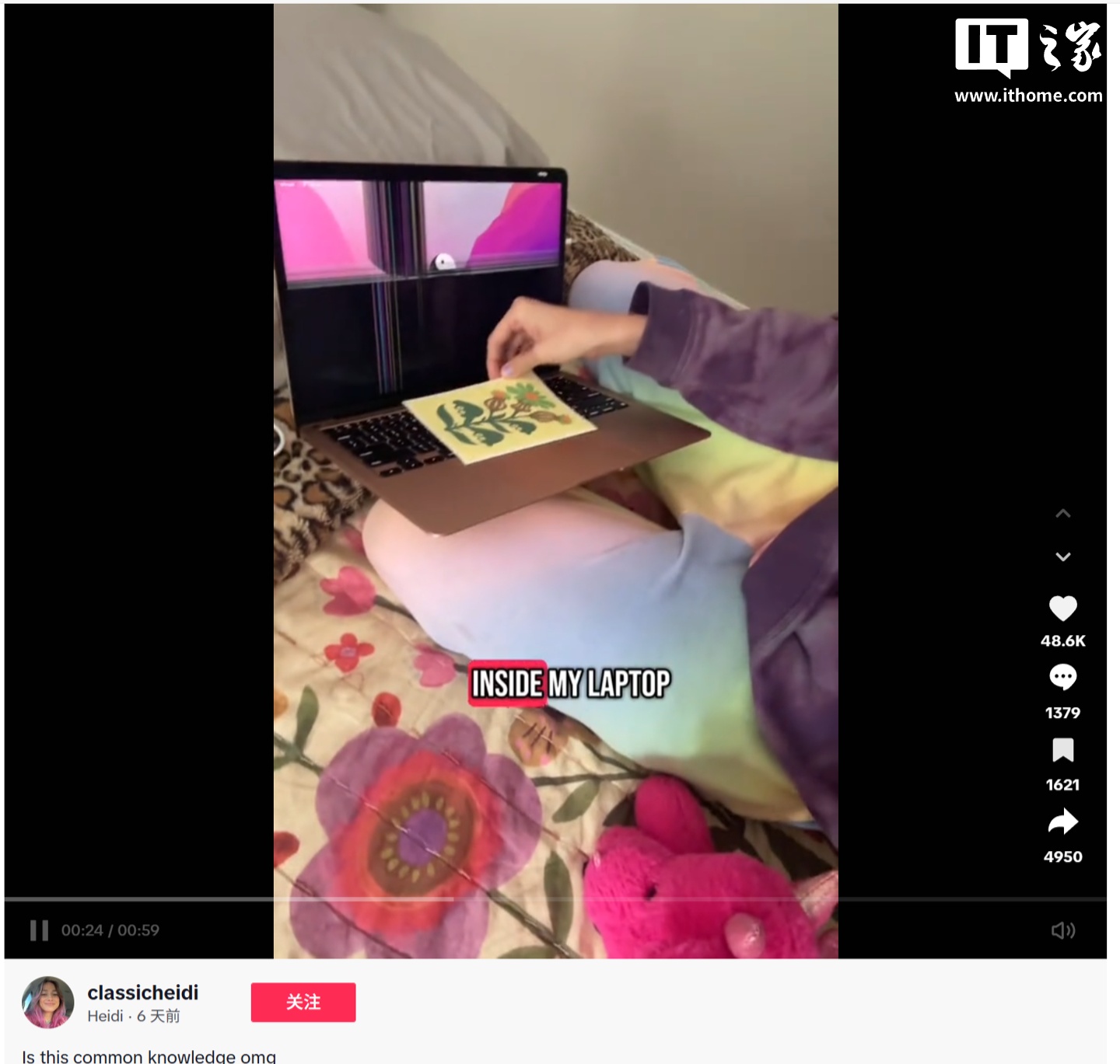 网友 classicheidi 上周(8 月 6 日)在 TikTok 上表示,她有一天在 MacBook Air 笔记本的键盘上放了一张卡片,然后合上了笔记本的盖子;第二天打开盖子时,她惊讶地发现,电脑屏幕有大半面积无法显示,且屏幕上出现了大量“彩线”。这一视频引发了大量讨论。