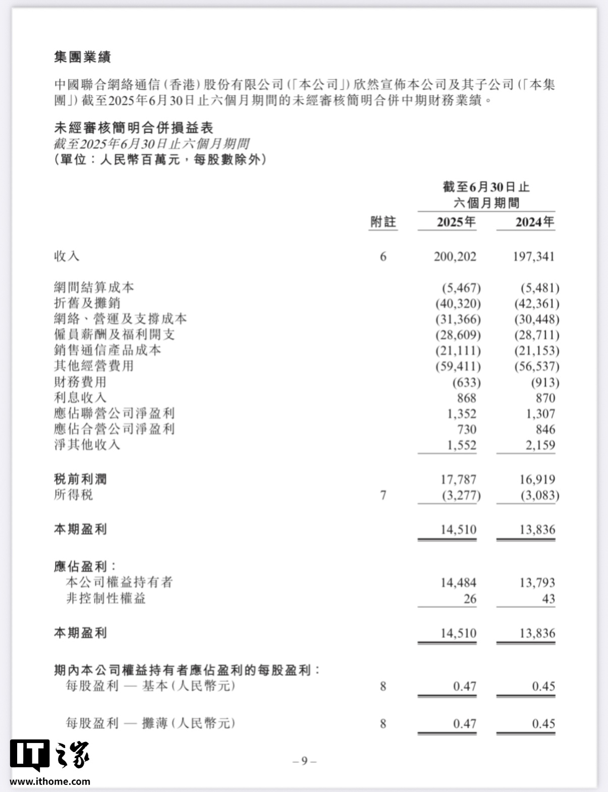 IT之家 8 月 12 日消息,中国联通今日发布最新的 Q2 业绩公告:公司上半年营业收入突破 2002 亿元人民币,同比增长 1.5%;盈利能力持续增强,税前利润达到 178 亿元,同比增长 5.1%。