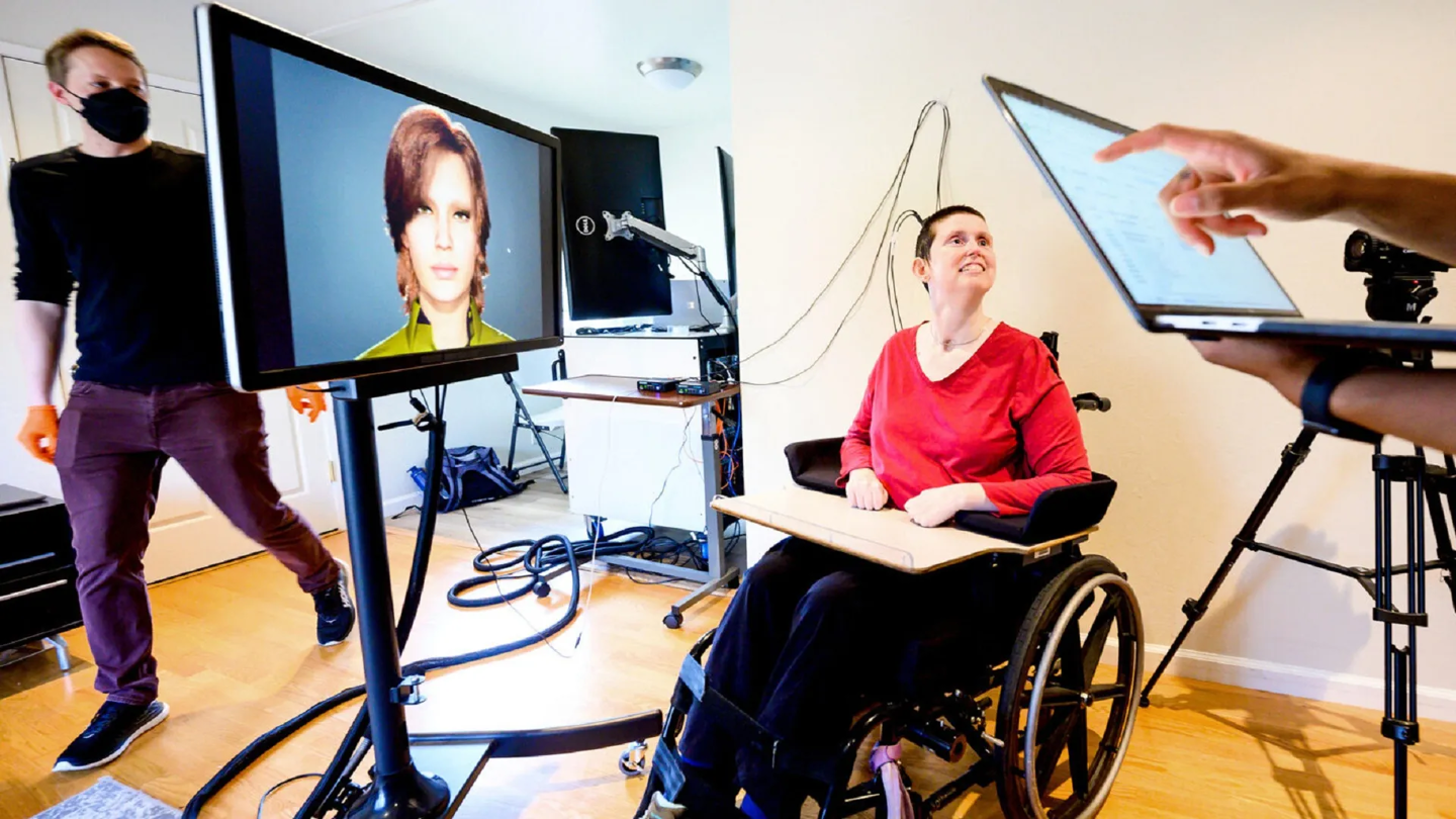 IT之家 8 月 14 日消息,加拿大萨斯喀彻温省的高中教师兼教练安・约翰逊(Ann Johnson)在 2005 年因脑干中风导致近乎完全瘫痪,此后一直饱受闭锁综合征的折磨。这种罕见病症使患者意识清醒,却无法言语或行动。18 年来,约翰逊依靠眼动追踪系统以每分钟 14 个词的速度与外界沟通,远低于正常人每分钟约 160 个词的对话速度。然而,如今她终于再次听到了自己的声音,这得益于一种脑机接口(BCI)技术,该技术能够直接从大脑活动中解码语言。
