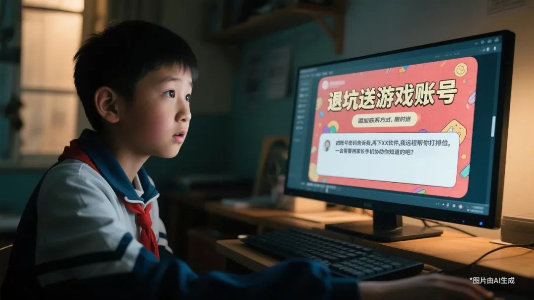 诈骗手段:诈骗分子发布“退坑送游戏账号”“招徒弟送皮肤”“免费代练、陪练”等针对未成年人的内容,将用户引导至其他平台后,再假冒警务人员以配合调查、否则上门告知父母等话术威胁、诱导对方使用家长手机进行转账。