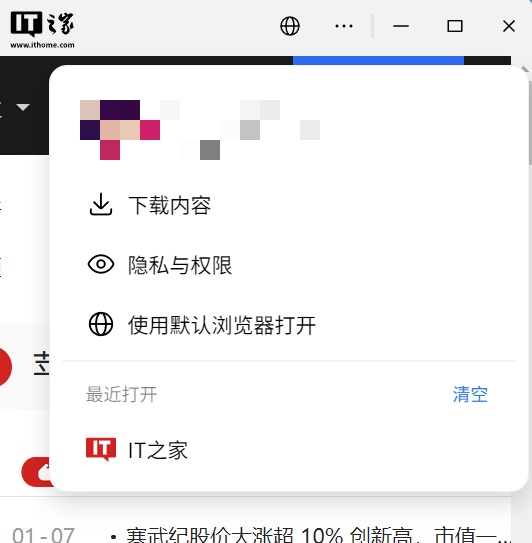 IT之家第一时间更新后发现,本次 QQ 新增的内置浏览器功能较为完备,支持多标签页浏览、管理麦克风 / 摄像头权限等功能,在浏览器的“更多”菜单中还可浏览最近看过的网页。