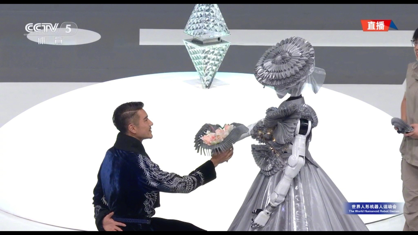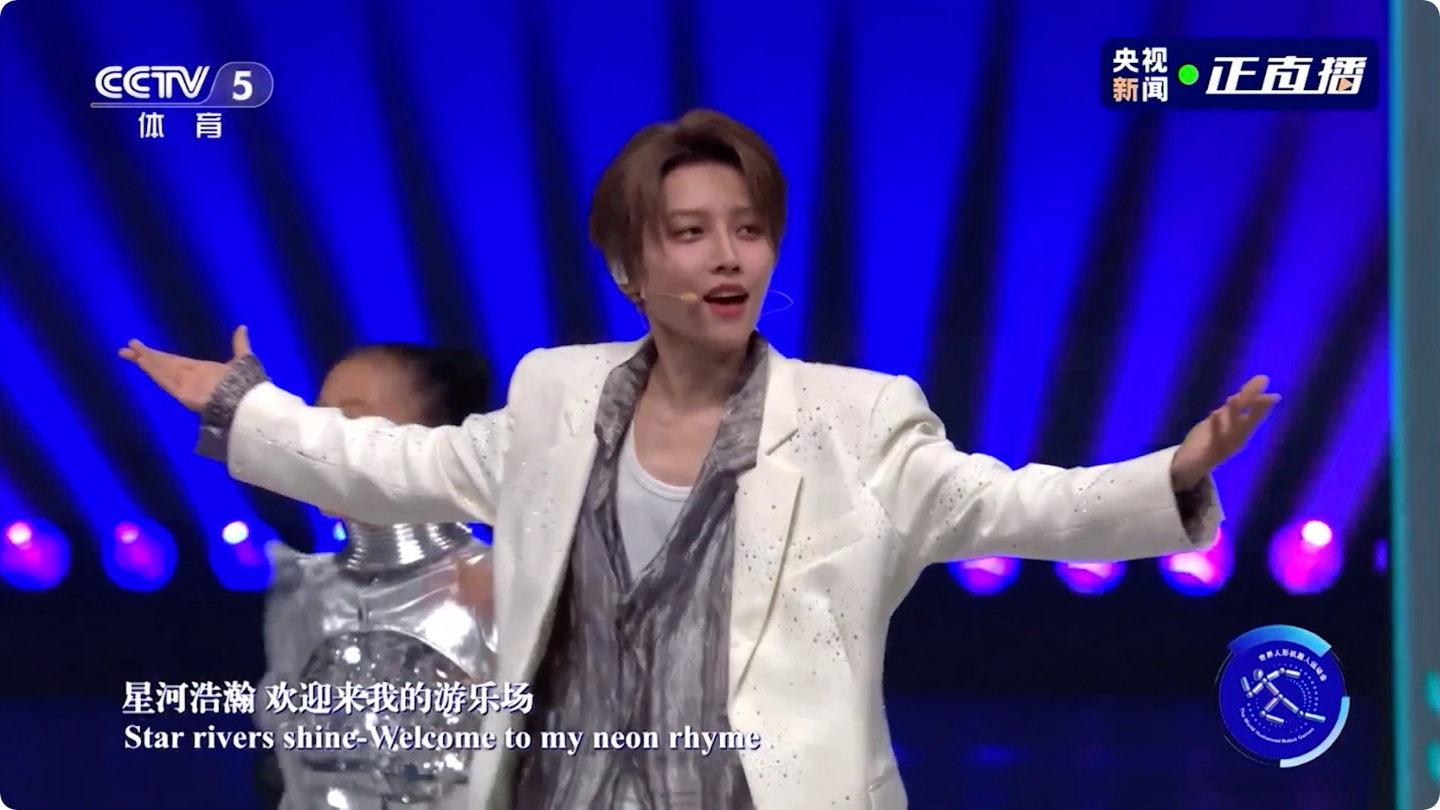 开幕式首秀节目中,人形机器人街舞团全球首次亮相,代表老牌实力的我国最早期舞团 ——“北舞堂”成员再聚首,演艺明星刘雨昕机械舞助阵,共同演绎开幕式首场秀《欢迎来到碳基生命的世界》,以人机互动、共融共创的方式为世界人形机器人运动会拉开帷幕。