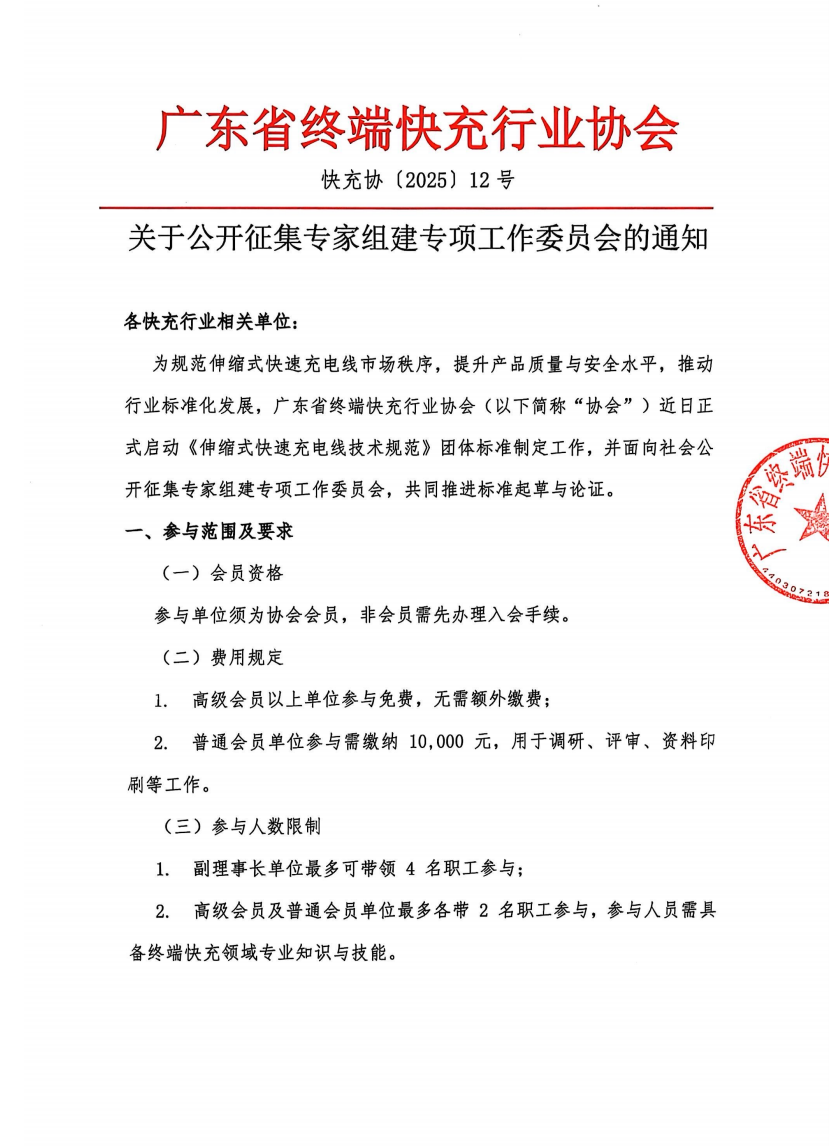 IT之家 8 月 15 日消息,广东省终端快充行业协会(简称“终端快充行业协会”)今日宣布启动《伸缩式快速充电线技术规范》团体标准制定工作,并面向社会公开征集专家组建专项工作委员会,共同推进标准起草与论证。