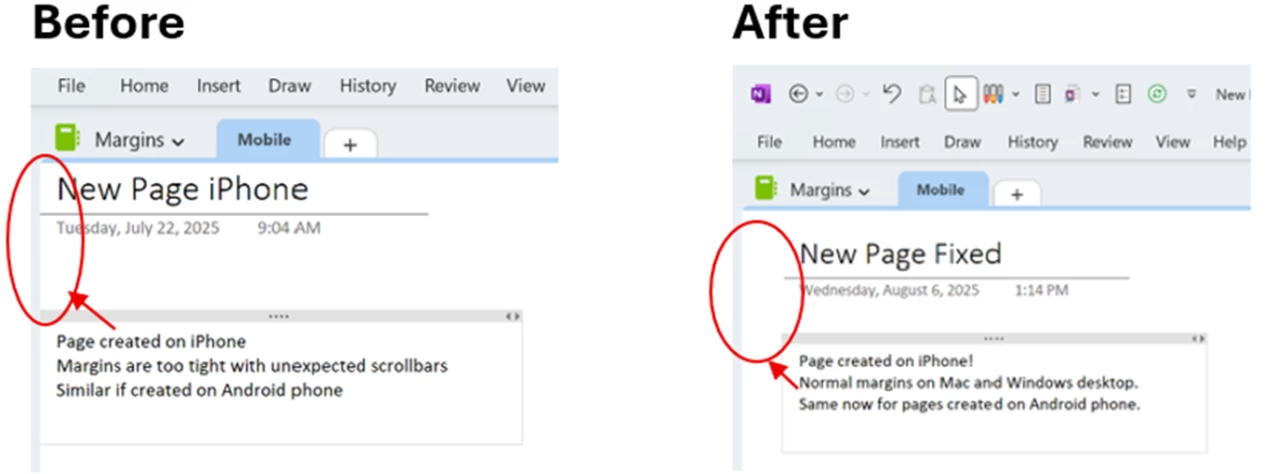 值得注意的是,此优化仅适用于更新后的 OneNote 移动端中新建页面,此前已创建的页面则仍维持原有边距设置,无法自动修正。