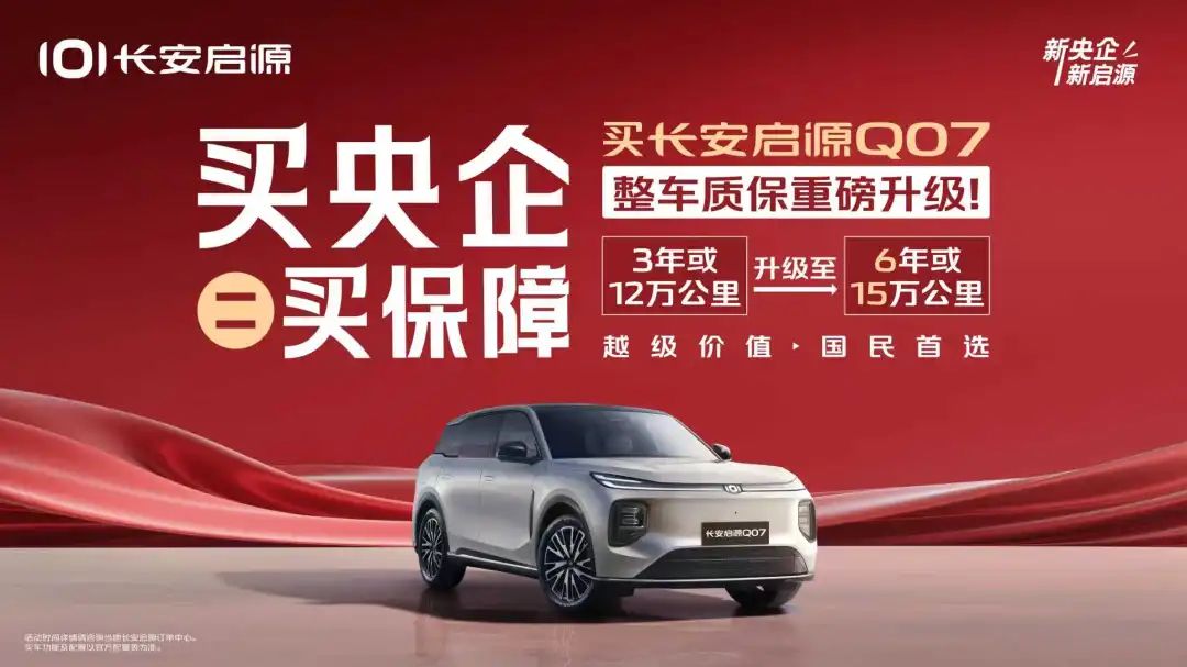 除购车福利政策外,整车质保服务同时守护升级,即日起,长安启源 Q07 整车质保从 3 年或 12 万公里升级至 6 年或 15 万公里,购买 Q07 所有车型配置的新老车主用户,均可享受上述质保服务。