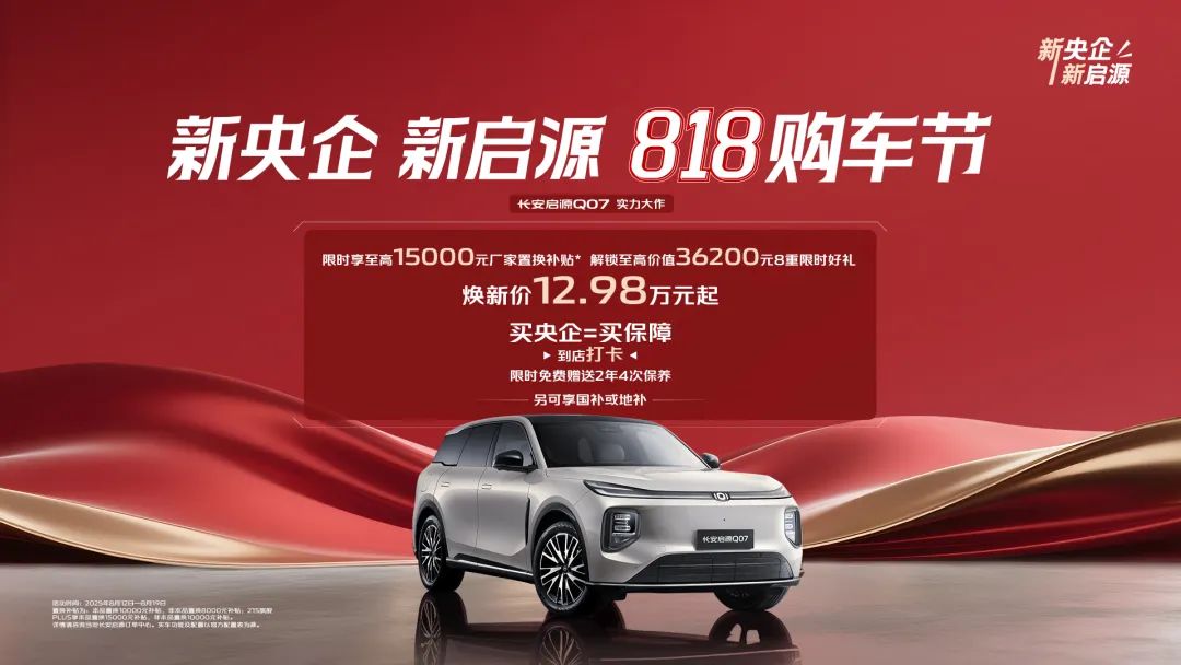 IT之家 8 月 15 日消息,长安启源今日发文宣布,自 2023 年 8 月发布以来,长安启源已累计收获超过 30 万用户,值此 2 周年之际,长安启源限时开启 818 购车节,Q07 购车福利政策升级。