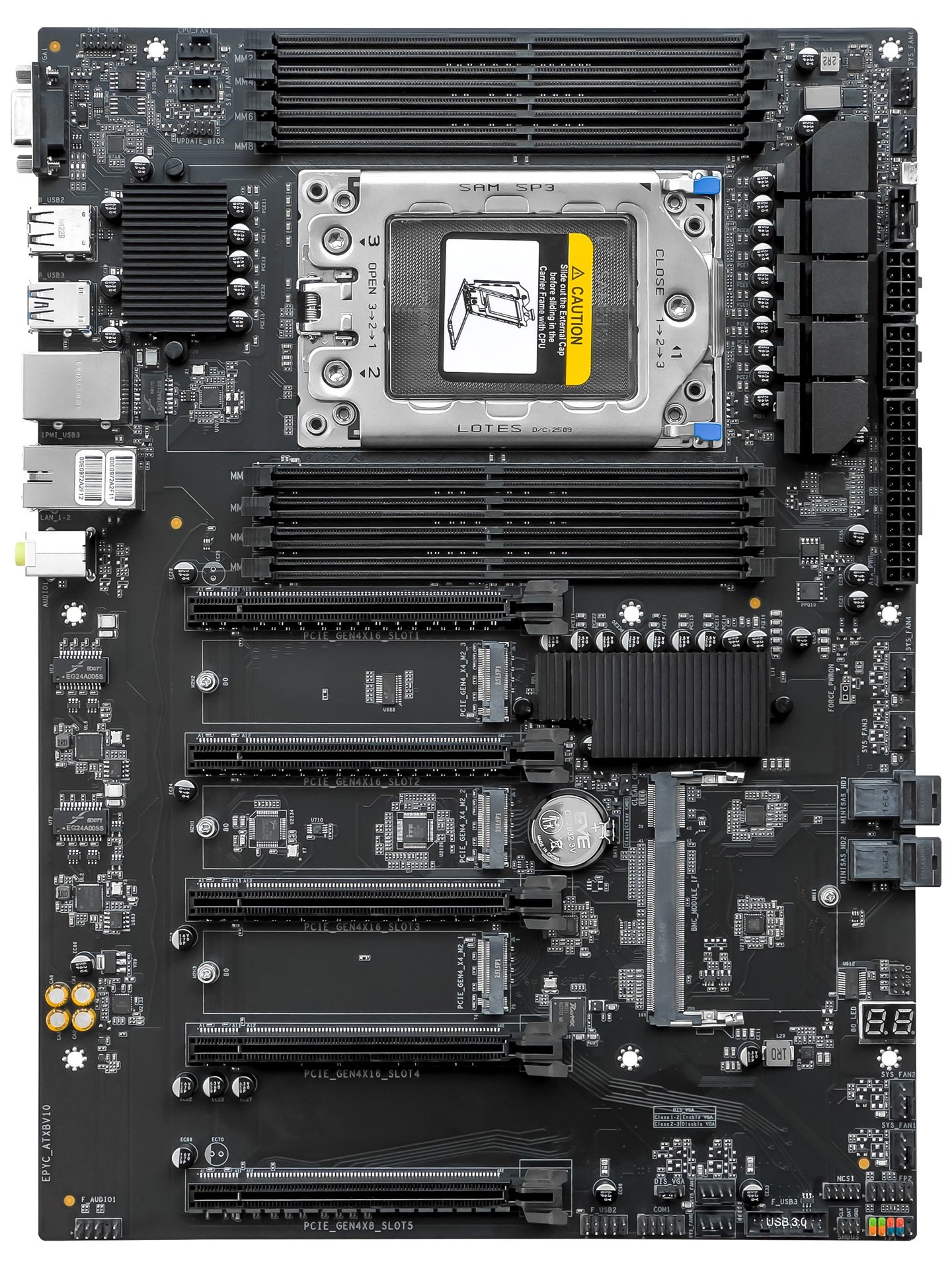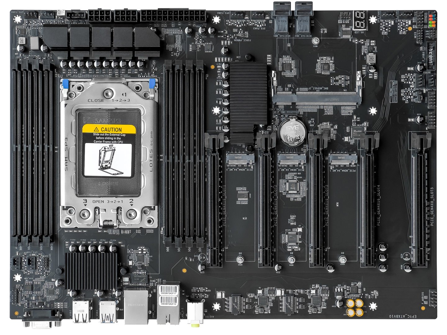 精粤 EPYC-H13 主板采用的是非标准板型:其宽度与常规 ATX 一样是 245mm,但长度来到了 339mm。