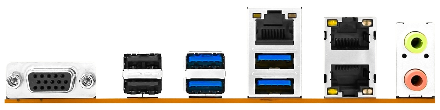 后置接口:1× VGA、2× USB-A 480Mbps、4× USB-A 5Gbps、2× 2.5GbE RJ45、1× 100MbE RJ45(IPMI 管理网口)、2× 音频插孔。