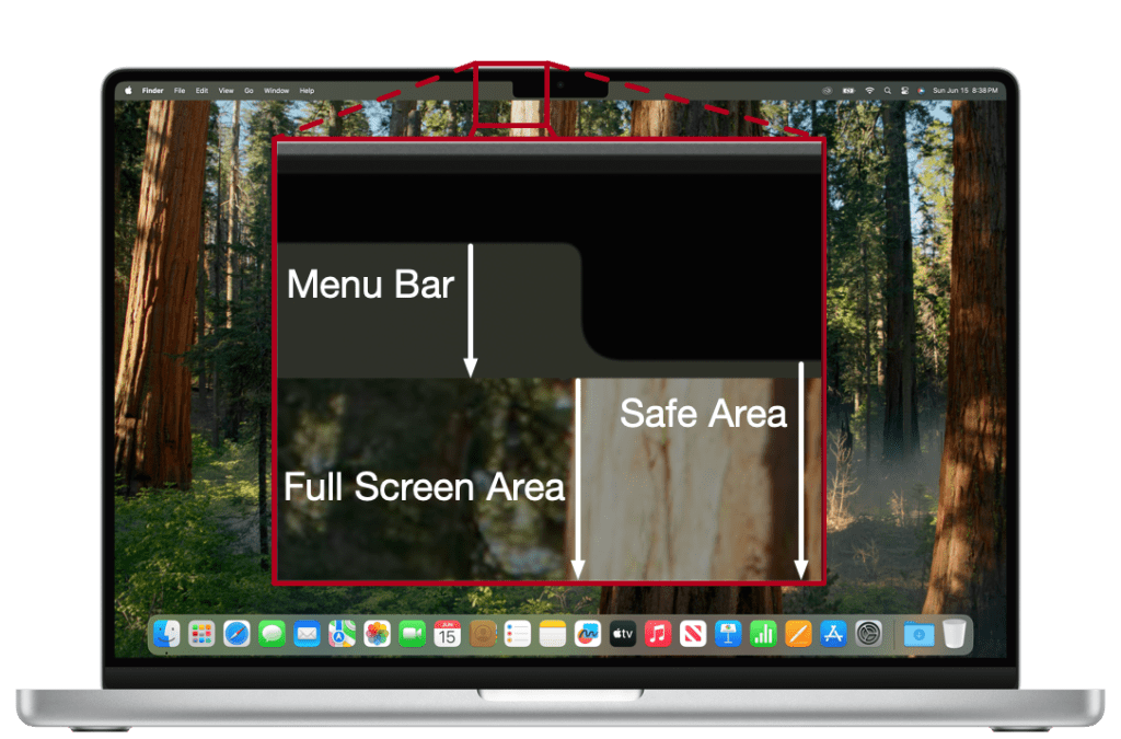 苹果在 macOS 系统中,将显示区域划分为三个概念:完整显示范围、安全区域(safe area)以及全屏可用区域。虽然 NSScreen 提供了 safeAreaInsets 属性用于标注安全区域,但这一区域与全屏实际可用区域并不完全重合,开发者若只依赖 safe area 仍会出现分辨率不匹配的问题。
