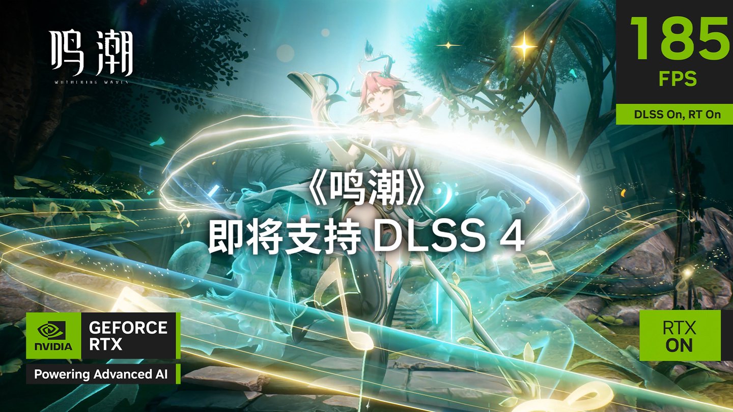 另外,英伟达宣布《鸣潮》2.6 版本将为 GeForce RTX 50 系列显卡新增 NVIDIA DLSS 4 多帧生成功能,享受性能倍增的流畅体验。