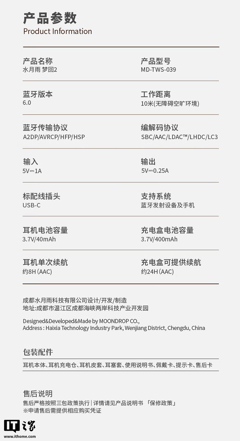 IT之家附耳机参数如下: