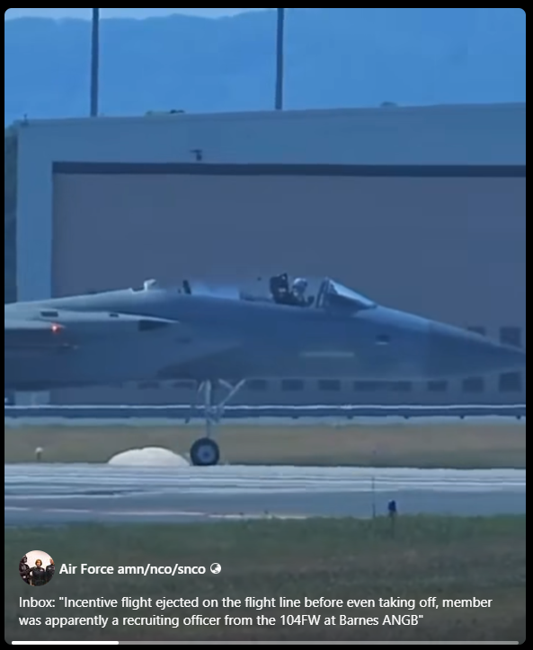 IT之家 8 月 17 日消息,央视今日报道称,美国马萨诸塞州韦斯特菲尔德的巴恩斯空军国民警卫队基地近期发生了一起战机内人员意外从战斗机上弹射出驾驶舱的事故。