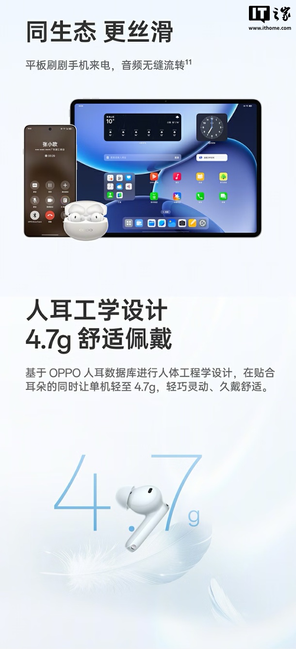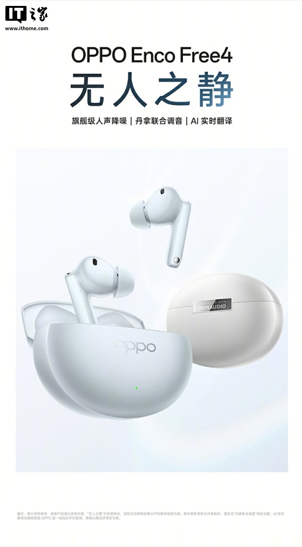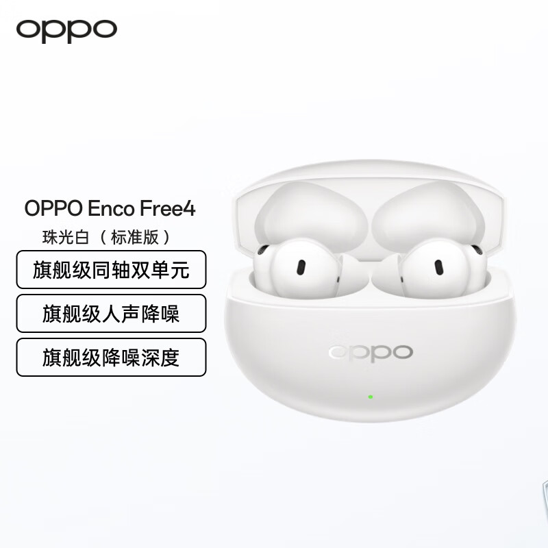 IT之家 8 月 18 日消息,OPPO Enco Free4 真无线耳机的“珠光白”配色版本今天开启预售,主打 55dB 深度降噪、双单元声学系统,硬件方面相比 Enco Free4 普通版没有变化,预售价 399 元,国补价约 339 元。
