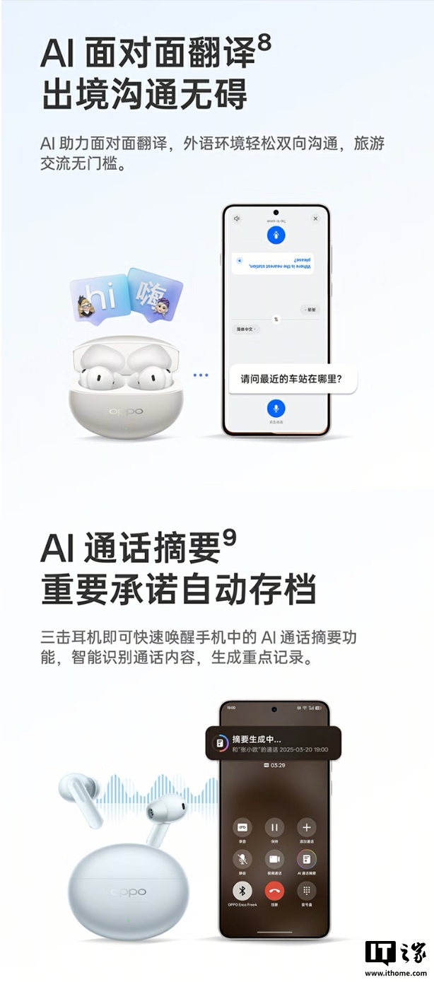 软件方面,这款耳机支持 AI 同声传译、面对面翻译等功能,可让用户出国旅游时减少语言障碍,更轻松地沟通,还支持“OPPO 生态”多设备流转,可在平板、手机间无缝流转音频。