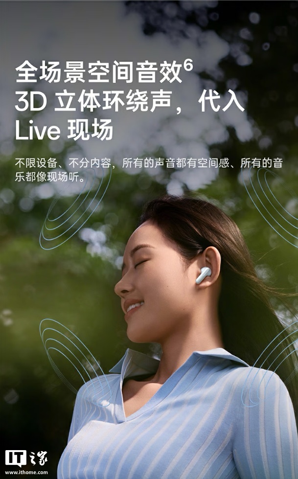 这款耳机还支持 3D 立体环绕声,可在所有设备、内容上启用,让音乐“都像现场听”。耳机还可用佩戴检测定制个性化听音方案,可找到用户的最佳听歌状态。