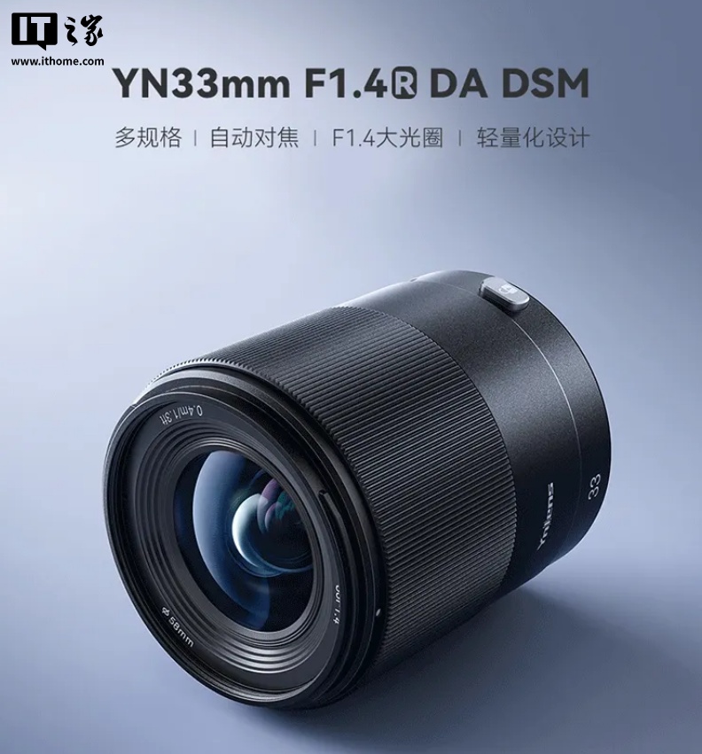 IT之家 8 月 18 日消息,永诺今日发布了 YN33mm F1.4R DA DSM 多规格卡口镜头,定价 1499 元,首发价 1484.01 元。