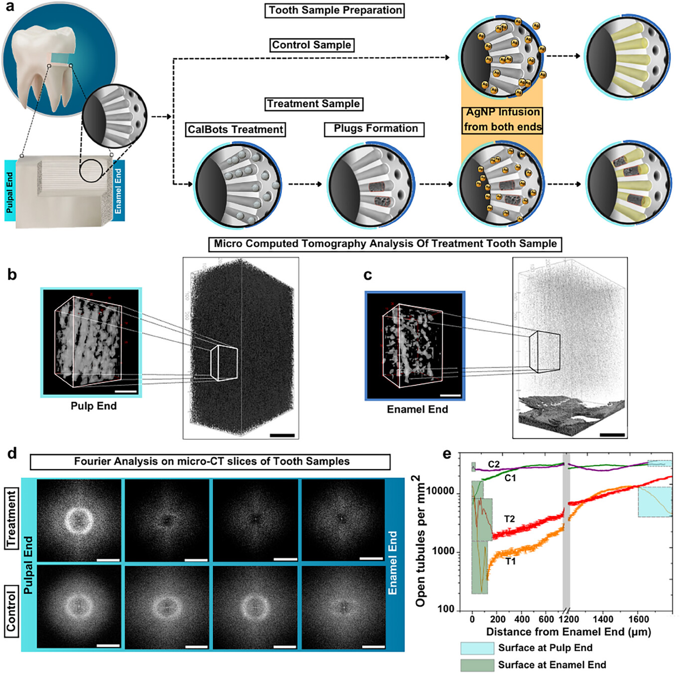 治疗时,CalBot 纳米机器人首先被涂布在牙齿表面,随后通过外部磁场的精确操控,这些纳米机器人会沿着牙本质小管向内移动,并在管道内形成长达 300-500 微米的“水泥”式封堵层。该封堵层可有效阻隔冷热等刺激物进入,从而达到类似牙釉质的保护效果。