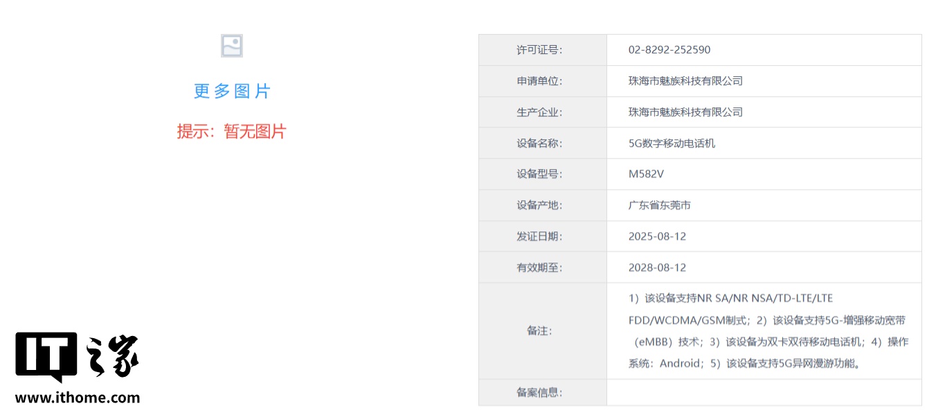 工信部电信设备进网许可网页显示,魅族有两款 5G 数字移动电话机在 8 月 12 日获进网许可,型号分别为 M582Q、M582V,@数码闲聊站 此前表示 M582Q 可能是魅族 22 的小屏版。