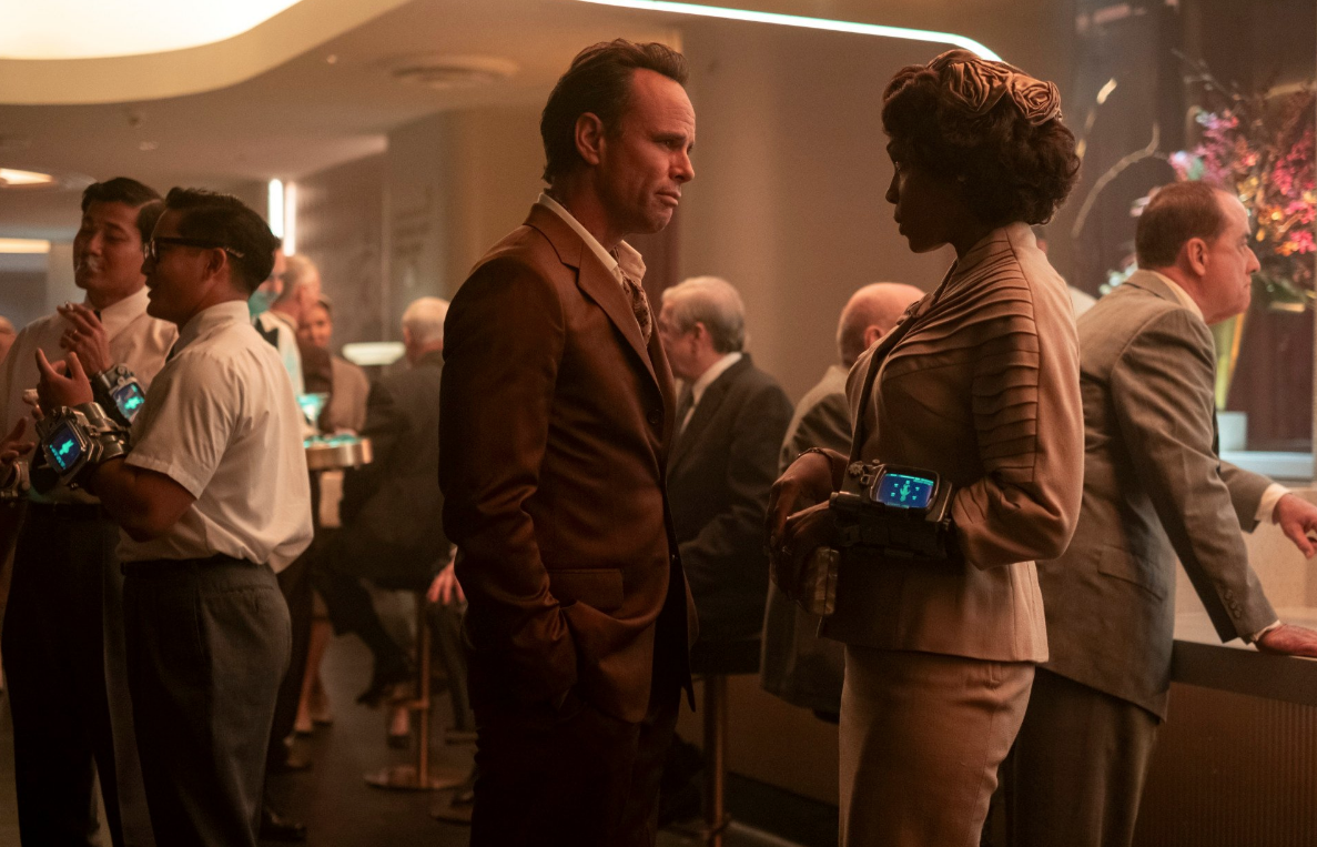 根据曝光的剧照,Walton Goggins 饰演的库珀・霍华德(Cooper Howard)在末世前现身拉斯维加斯,展现了他成为“食尸鬼”前的人类生活片段。这一角色设定延续了第一季结尾的悬念,为第二季埋下更多伏笔。