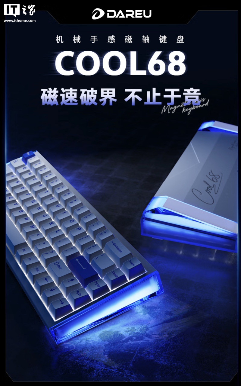 IT之家 8 月 19 日消息,达尔优旗下 COOL68 磁轴键盘现已在京东开启首销,该键盘可选火力橙 / 云海蓝 / 冰岩黑三种配色,对应影刃磁轴(259 元)/冰刃磁轴(299 元)。