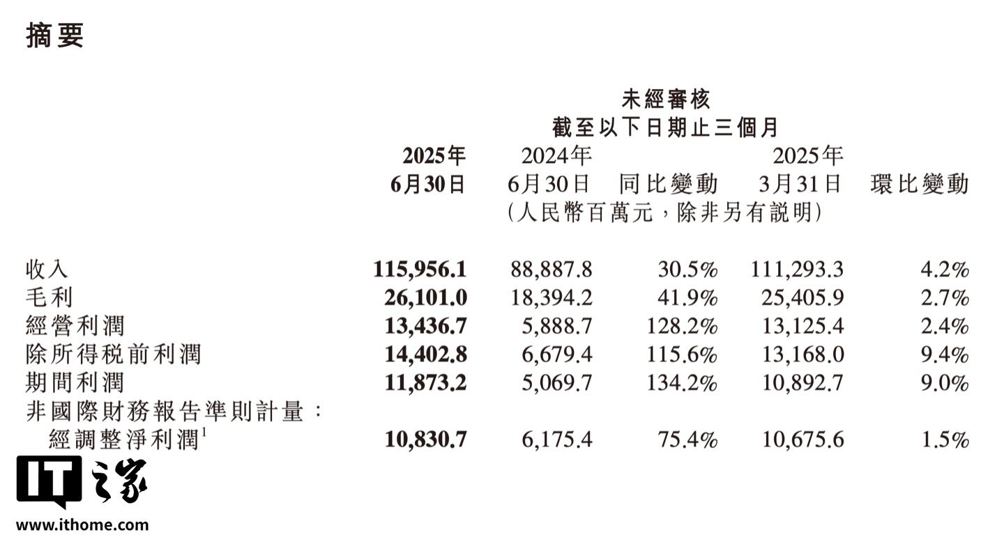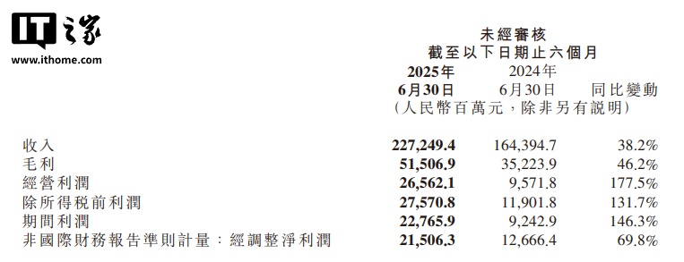IT之家 8 月 19 日消息,小米集团刚刚发布了截至 2025 年 6 月 30 日的 2025 年第二季度财报。IT之家汇总主要数据如下: