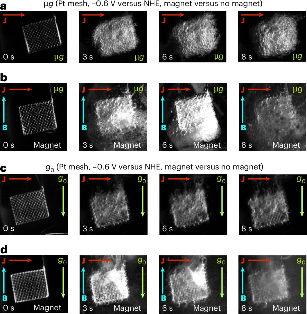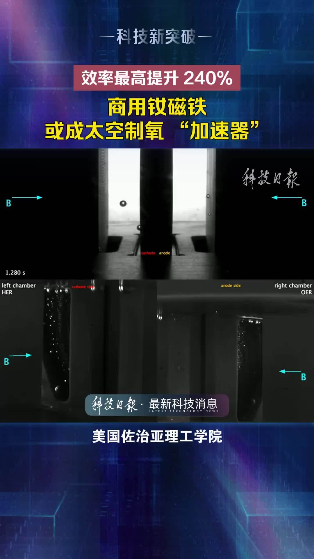 IT之家 8 月 20 日消息,科技媒体 iflscience 昨日(8 月 19 日)发布,美国科研团队通过普通钕磁铁,利用磁性分离水中电解产生的氧气泡,实现微重力环境下高效制氧,让水的分解效率最多提高 240%,有望为人类宇航员制取更多氧气。