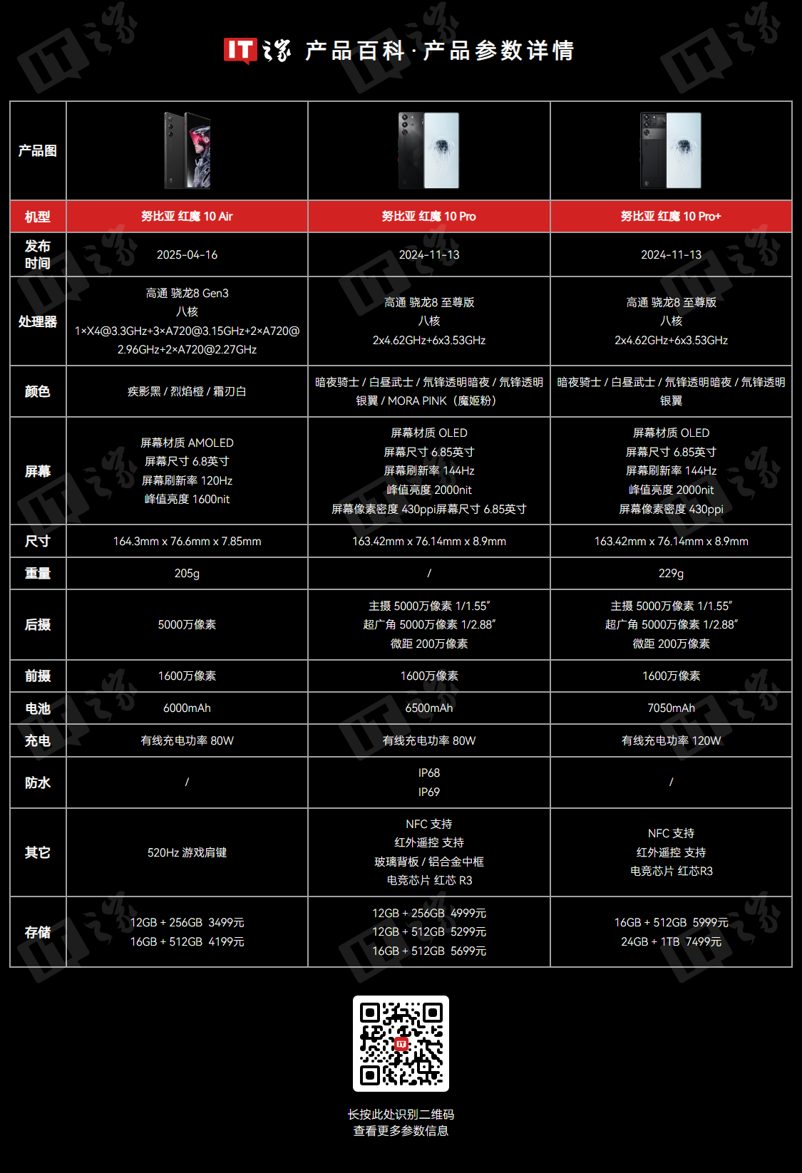 作为对比,红魔游戏手机 10 系列于去年 11 月推出 Pro 及 Pro + 两款机型,后于今年 4 月推出一款 Air 机型。
