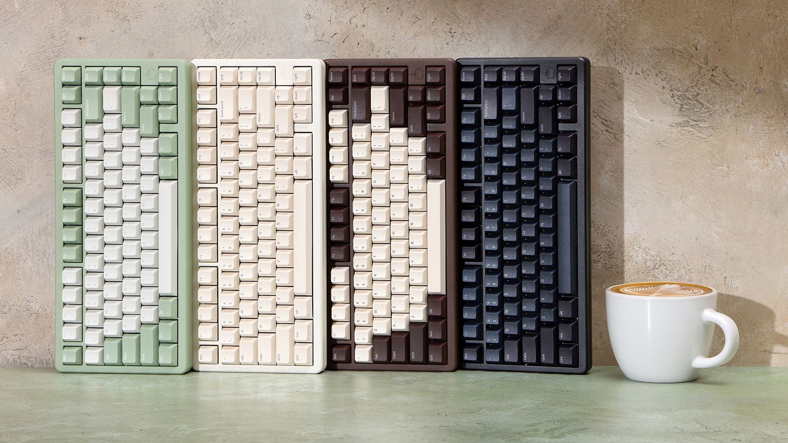 Drop Latte75 键盘包含整体深色的经典拿铁、部分键位为绿色的抹茶拿铁、黑白相间的摩卡拿铁、象牙白的香草拿铁四个版本,当前售价均为 149 美元(IT之家注:现汇率约合 1070 元人民币)。