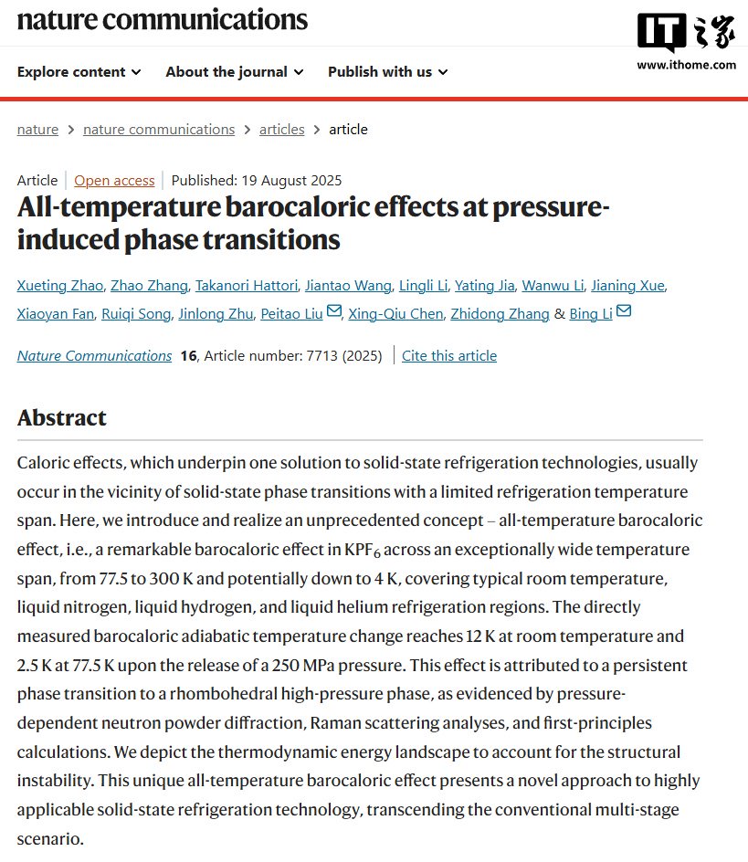 IT之家查询获悉,这一研究结果已于昨晚发表于 Nature Communications(https://doi.org/ 10.1038 / s41467-025-63068-z)。