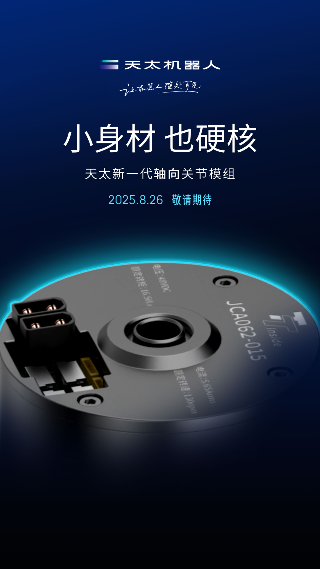 此外IT之家注意到,8 月 26 日,天太机器人将全球首发新一代径向与轴向关节模组。全新模组拥有超轻、超薄、动力更强劲的极致性能,并且其价格将首次进入三位数时代。