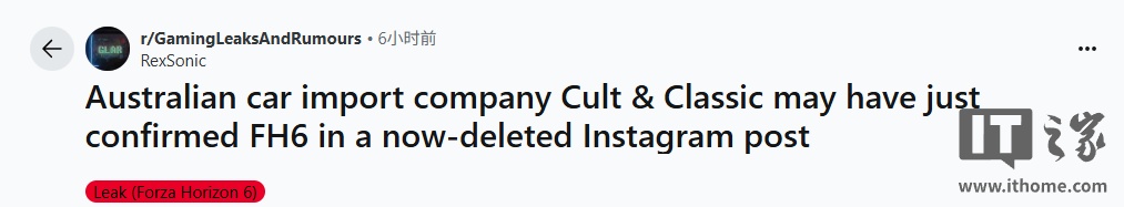 IT之家 8 月 21 日消息,网友 RexSonic 今天在 Reddit 论坛表示,他注意到一家澳洲汽车进口公司 Cult & Classic 昨天在社媒 Instagram 发布视频,其中显示《极限竞速:地平线》团队正在为新作奔走海外。