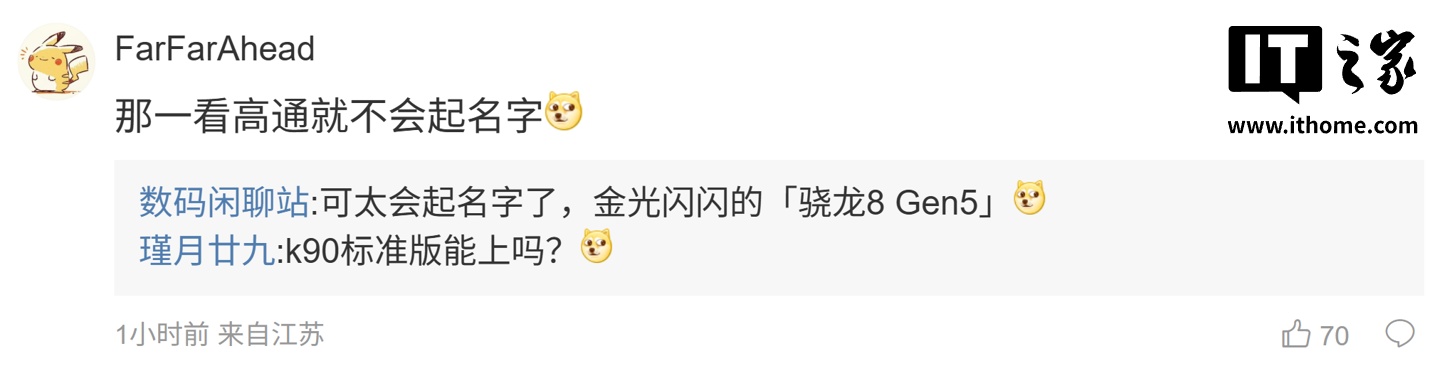 ”,博主回复道:“可太会起名字了,金光闪闪的‘骁龙 8 Gen5’