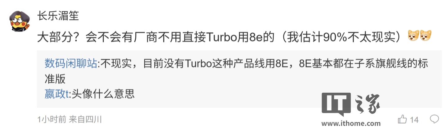 ”,博主则表示:“不现实,目前没有 Turbo 这种产品线用 8E,8E 基本都在子系旗舰线的标准版”。