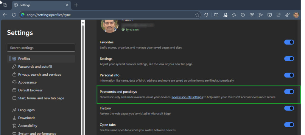 这是 Edge 首次在同步选项中将通行密钥与密码并列,表明微软计划把通行密钥功能深度整合进浏览器。
