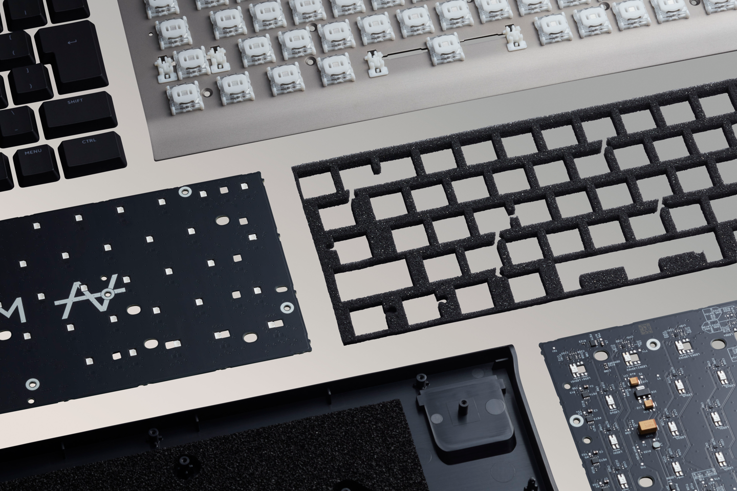 ZENAIM 的二代键盘改进了键帽字符的耐久度,而在吸声填充方面在原有的日东 EPTSEALER EPDM 泡沫橡胶基础上新增了一层井上 CALMFLEX 聚氨酯。此外新一代型号在不牺牲性能与质量的前提下压低了物料成本,产品售价也相对更低。