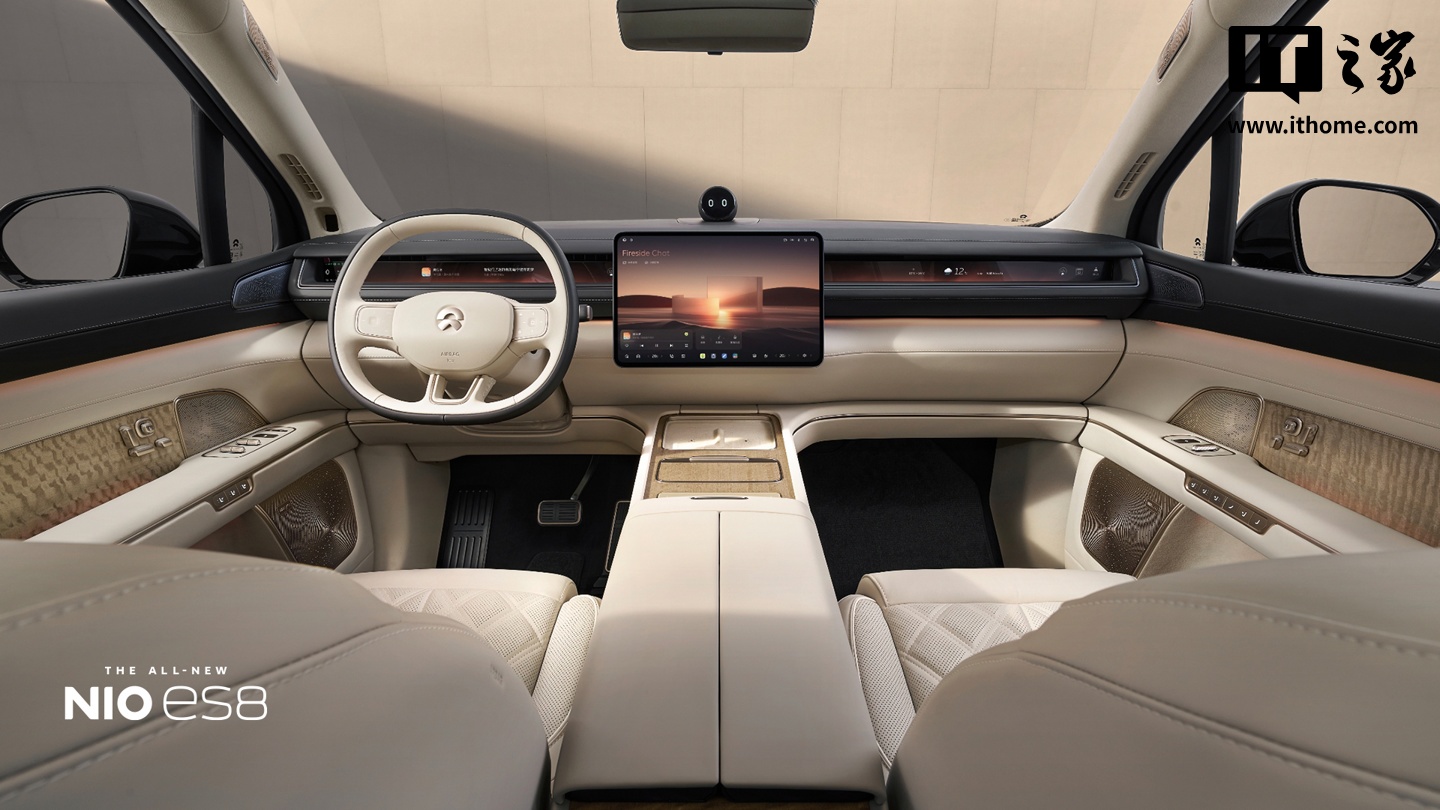 全新 ES8 座舱采用“第二起居室”理念,强调空间的舒适性和操作的便捷性。内饰材质包括甄选实木饰材和金属饰条,采用缎面拉丝工艺。座椅设计采用珩缝与刺绣工艺,全车采用 12 万针刺绣珩缝针脚。