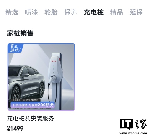 IT之家查询比亚迪官方线上商城,暂未找到「灵充」充电桩售卖渠道。上一代充电桩搭配安装服务定价 1499 元。