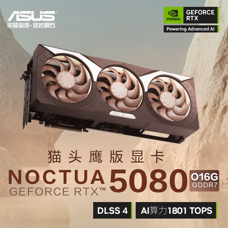 IT之家 8 月 21 日消息,华硕与猫头鹰推出的联名显卡 GeForce RTX 5080 16GB GDDR7 Noctua OC Edition 现已以 16599 元的价格登陆国内电商平台。考虑到英伟达为 GeForce RTX 5080 16GB 指定的国内 MSRP 为 8299 元,这意味着该卡售价达到了同规格产品建议零售价的两倍。