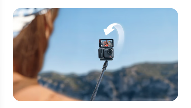 其他方面,该产品还支持 SD 卡自由替换,内置智能降风噪、智能人声增强等多种音频模式,配备 2.5 英寸翻转触摸屏,支持 FlowState 防抖科技 & 360° 水平矫正,拓展舱 IPX4 级防水,单相机 10 米防水。