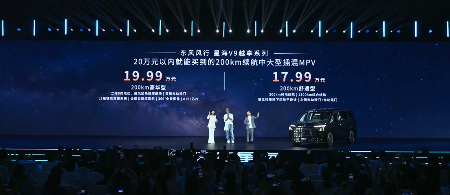 IT之家 8 月 21 日消息,2026 款东风风行星海 V9 越享系列中大型插混 MPV 车型今日正式上市,售价 17.99 万元起,IT之家附定价: