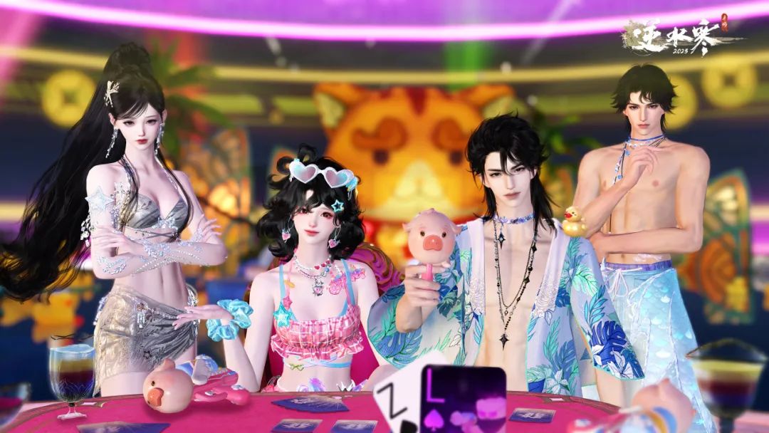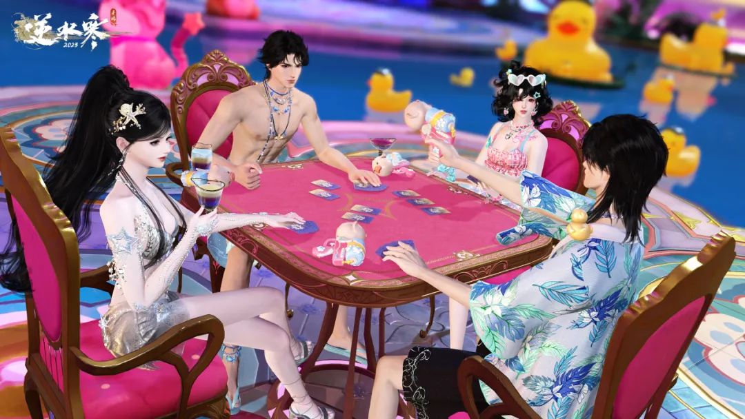 逆水寒新版本更新后,心计牌全新模式【大乱斗】即将焕然登场,玩家可穿上美丽泳装,在泳池派对中来一场水枪对局。