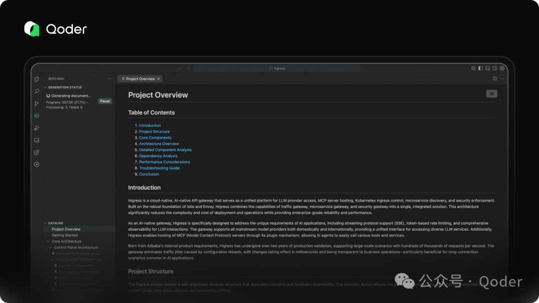 率先支持 Repo Wiki,将代码工程的隐性知识显性化,方便开发者和 AI 理解;