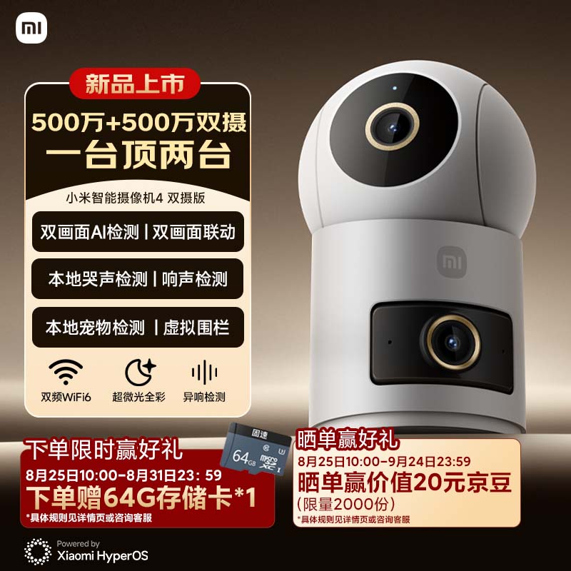 IT之家 8 月 22 日消息,小米智能摄像机 4 双摄版现已上架京东平台并开启预约,8 月 25 日 10:00 开售,价格为 299 元。