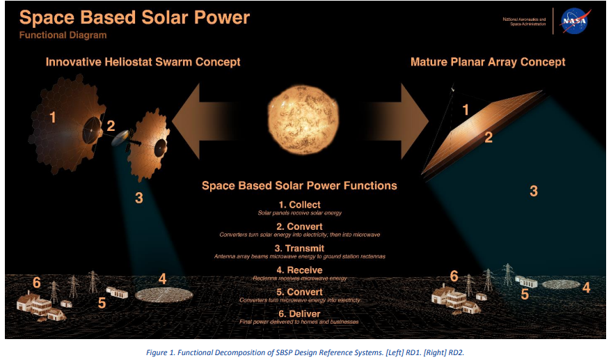 该研究的核心,是美国宇航局设计的太空太阳能板配备镜面反射器,集中收集太空中的阳光后,定向传输到地球上的接收站。