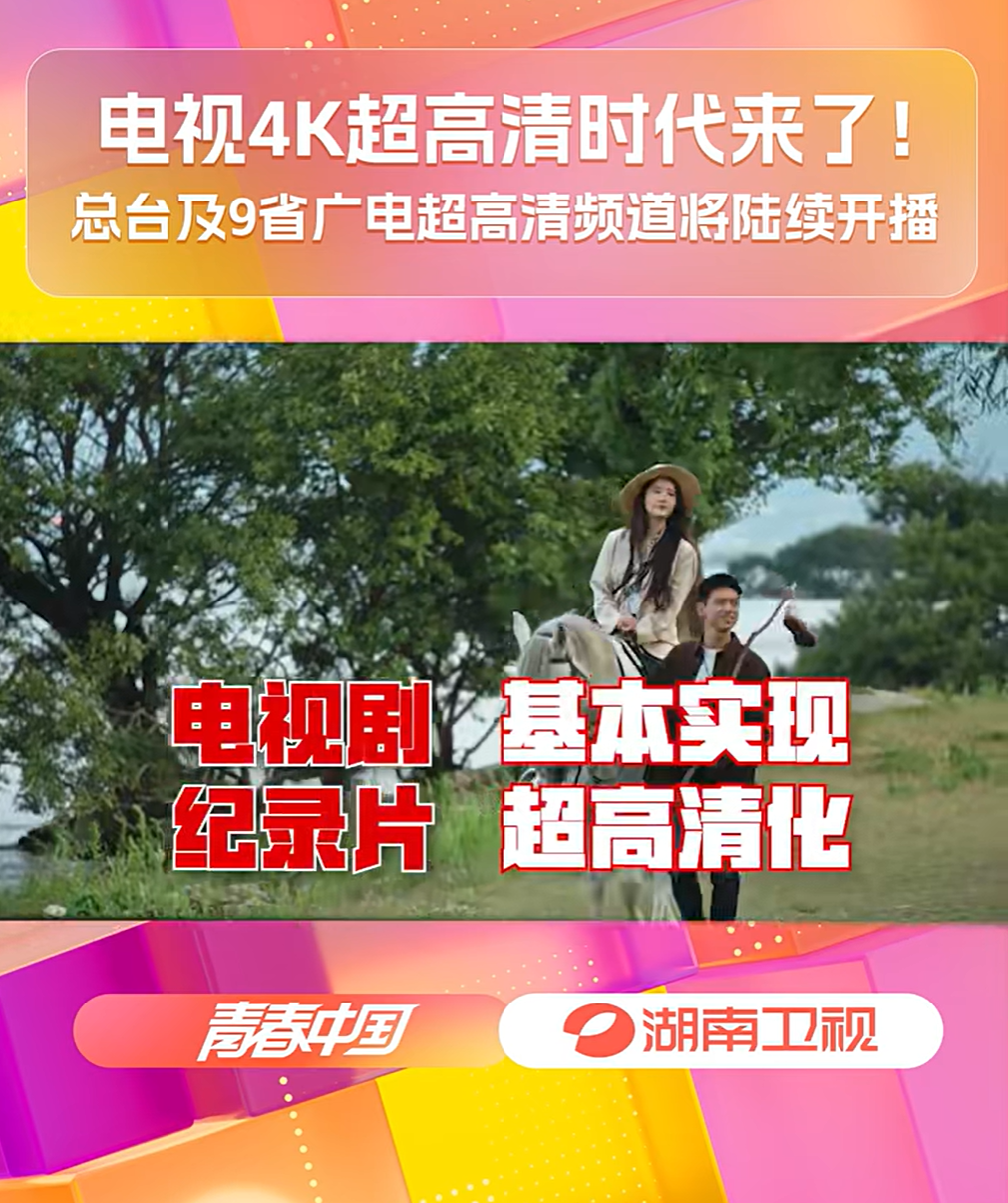 接下来,湖南卫视、东方卫视超高清频道将于 9 月 28 日开播,预计江苏、浙江、山东、四川等卫视,也将于 9 月底至年底前正式开播。