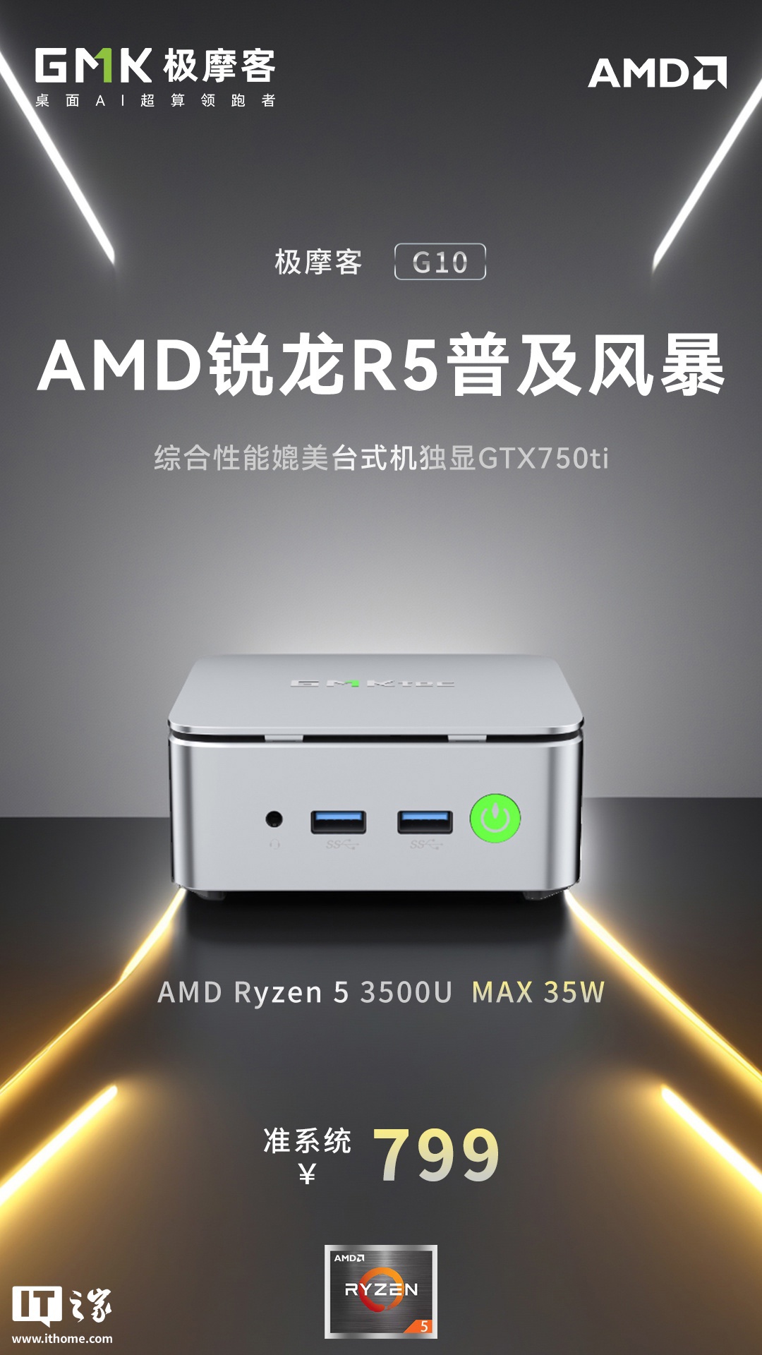 IT之家 8 月 24 日消息,极摩客 GMK 现已为其今年 6 月推出的 AMD 锐龙 5 3500U 处理器迷你主机 G10 新增一款“0+0 无存储准系统版”,定价 799 元。
