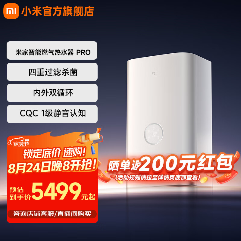 IT之家 8 月 24 日消息,小米今天上架了一款米家智能燃气热水器 Pro 新品,日常价 5499 元,将于 8 月 24 日晚 20:00 开抢,首发 4999 元,叠加 15% 国补后 4249.2 元。