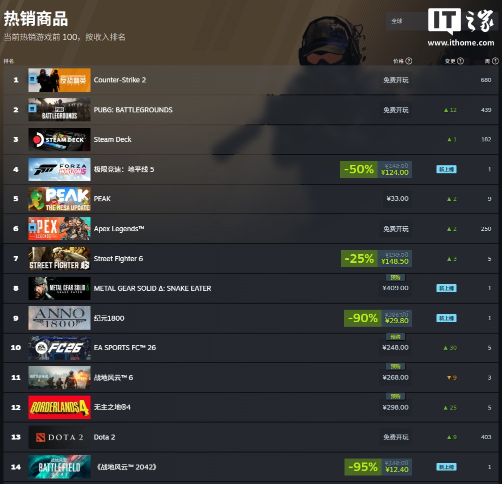 考虑到《战地 6》将于 2025 年 10 月 10 日正式发售,届时将会有大量玩家移步《战地 6》,不少玩家评价这可能是《战地 2042》“最后的辉煌”了。受本次促销影响,《战地 2042》目前已经重新登上 Steam 全球热销榜,但依然不及《战地 6》。