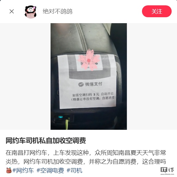 IT之家 8 月 25 日消息,话题“网约车挂 3 元空调费二维码”在近日引发广泛讨论。对此,不少网友认为开空调为乘客基本权利,不应另外收取空调费,也有部分网友对开空调的成本压力表示理解。