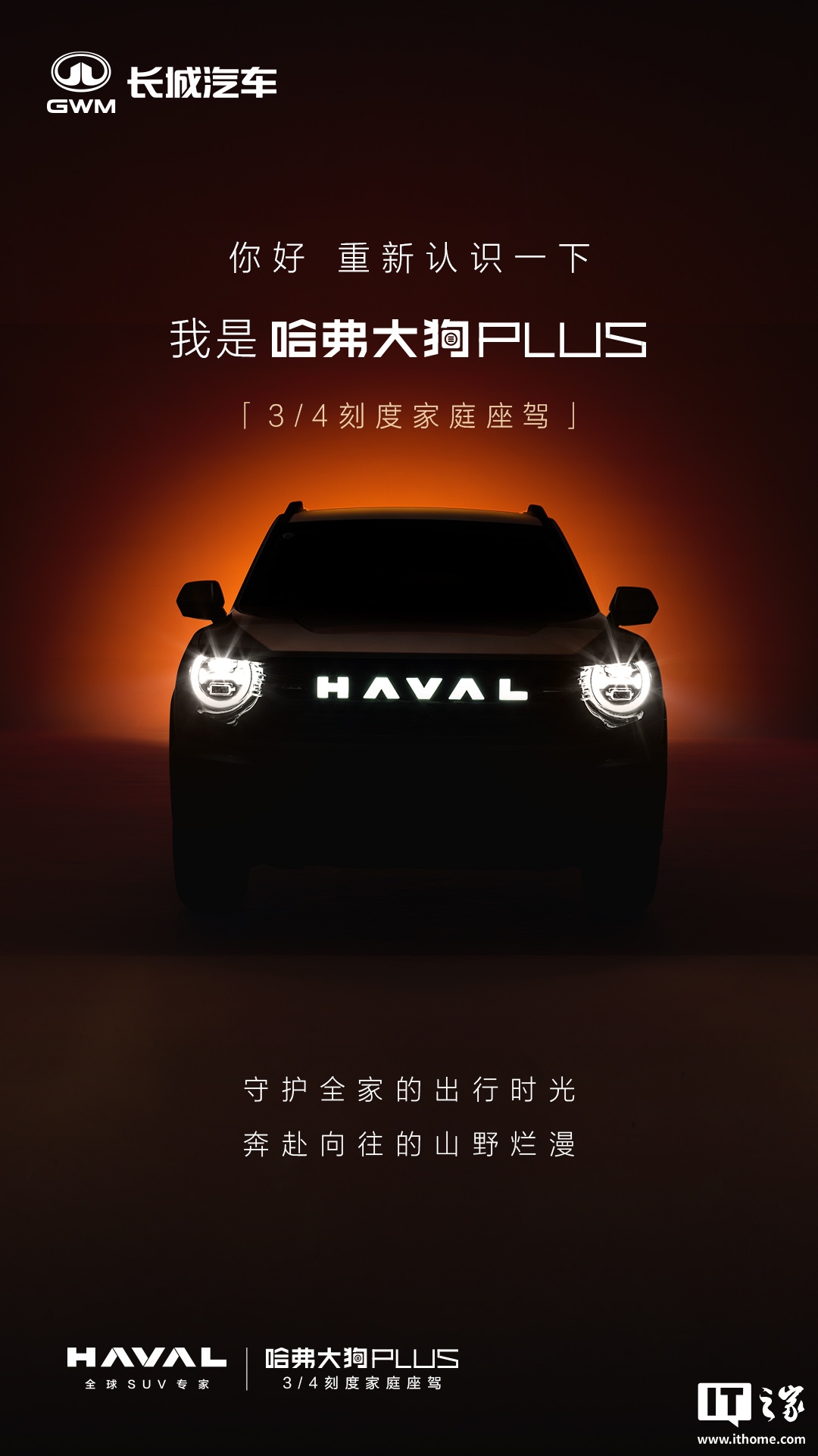 IT之家注意到,外观设计上,从此次官方发布的预告图来看,哈弗大狗 PLUS 基本保留了现款车型的设计风格,继续传承 3/4 刻度家族基因。所谓 3/4 刻度家族基因就是介于城市 SUV 与传统越野车之间,兼具城市出行的便捷性与越野车的硬派气质。预告图显示,新车的格栅中央品牌 LOGO 采用了发光设计。